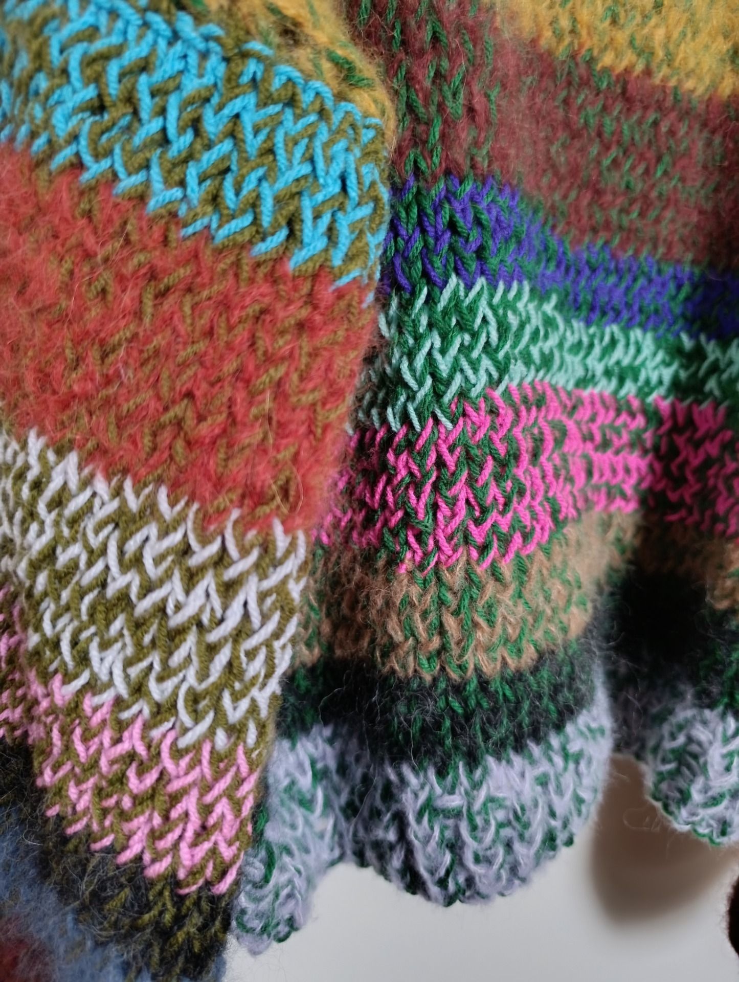 Originální kousek s duší a jedinečným designem. Každý svetr je absolutně unikátní, díky ručnímu pletení a kombinaci barevných a texturovaných přízí nikdy nevzniknou dva stejné kusy. Důraz na detail, pohodlí a výjimečnost. Zahřeje tě nejen na těle, ale i na duši.