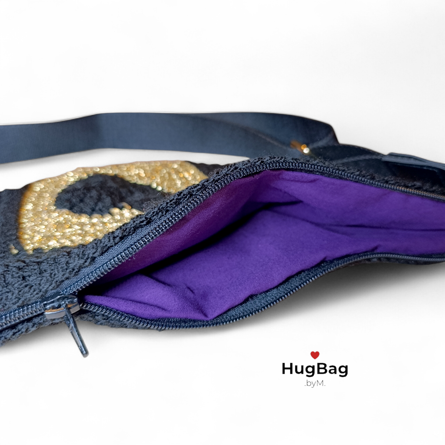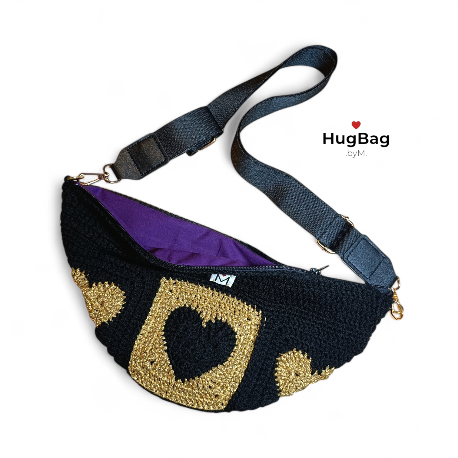 Kombinace zlaté a černé působí luxusně a sebevědomě, zatímco srdíčkový vzor dodává ledvince jemnost a emoci. HugBag Vznešená připomíná, že elegance může být i hravá a že krása se často skrývá v detailech. Nastavitelný popruh s kovovými doplňky zajišťuje pohodlí i variabilní nošení.